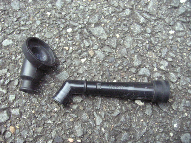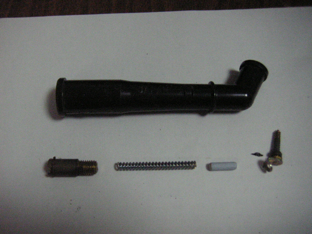 一度目は、プラグコードの差込不足でしたが。 それをしっかり直したのに、いまいち調子が良くない。症状もプラグコードの差込不足と同じ感じ。 1.プラグコードが悪いのか? 2.プラグキャップの1番だけ、抵抗値が高いのが悪いのか? 3.プラグキャップの不良 4.点火コイルの故障 5.キャブの不調 6.漏電している とりあえず、思いつく限りはこれだけ。 プラグコードは、換えたばかり。 キャブの不調なら、コード換える前からそうだろうし・・・・・ん~~。 とりあえず、プラグコードをもう一度チェックすると4番だけが、力を加えないでも キャップが外れる。これか??? だめもとで、プラグキャップを注文。 さて、プラグキャップの交換です。 まずは、タンクを下ろして、すぽすぽと抜ける4番のプラグキャップからコードを抜きます。 うむ・・・コードはしっかり噛んでるな。 この、一番、左の蓋の部分と プラグキャップ本体と 更にキャップについてる ゴムの部分の3つに分解することが出来ます。 蓋の部分と、ゴムの部分は外して新しいのに再利用します。 ちょっと見難いけど、プラグキャップの中の写真。 注目するのは、右側の写真。中に一本、棒みたいのがある。左の写真はない。 これが、あることでプラグにしっかり噛むことが出来るんだが・・・・右側のは錆びて動かなくなったか。 壊れてなくなったかしたようだ。抵抗値は、どっちも8Ωでした。 新品も抵抗値が8Ωということは、1番以外は、正常ということか。なるほど。 さて・・・・8Ωの秘密に迫ってみましょう。 粉砕!!! 右から、二番目の白い奴が、物理抵抗で、ぴったり8Ω他の部品は全て、0Ωでした。 なんで、こういうことしてるのか、はっきりした理由は調べてないので分かりません。 調べたらまた更新しよっと。 PR |