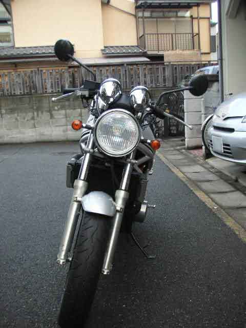 前のミラーは買ったときから着いていた、Z2・・・だったかな? ハンドルの最端から結構高い位置(肩の位置ぐらいの高さかな?)にあり目を動かすだけで後方確認ができた。 なんで割ったんだったかな?よくバイクをこかして壊しては治ししているのだけれど・・・。